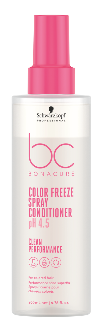 Der BonaCure Color Freeze Spray Conditioner von Schwarzkopf hilft das colorierte Haar zu entwirren und macht es sofort geschmeidig und besser kämmbar. Die Schuppenschicht wird versiegelt und die Haaroberfläche geglättet und geschützt.