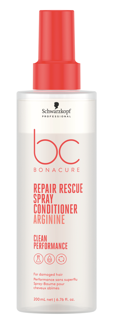 Der BonaCure Repair Rescue Sprayconditioner von Schwarzkopf repariert geschädigtes, stumpfes, poröses und bruchanfälliges Haar, entwirrt es und erleichtert so die Kämmbarkeit.