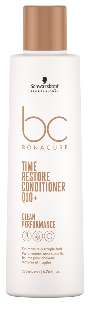 Der pflegende BonaCure Time Restore Conditioner von Schwarzkopf repariert die geschädigte Haarstruktur von innen, entwirrt das Haar, verbessert die Kämmbarkeit und schenkt dem Haar Vitalität und Fülle, ohne es zu beschweren. Zusätzlich sorgt er für tollen Glanz und verbessert die Geschmeidigkeit und das Styling.